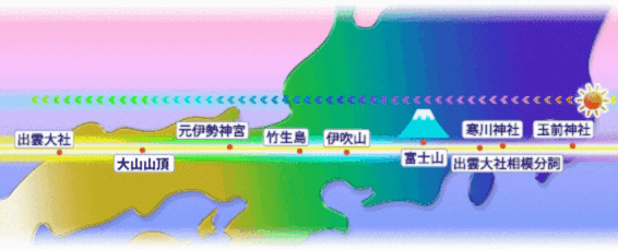 このライン上には、元伊勢神宮、富士山山頂、出雲大社など、日本の聖地が数多く位置しており、その全長は700kmにも達するのです。